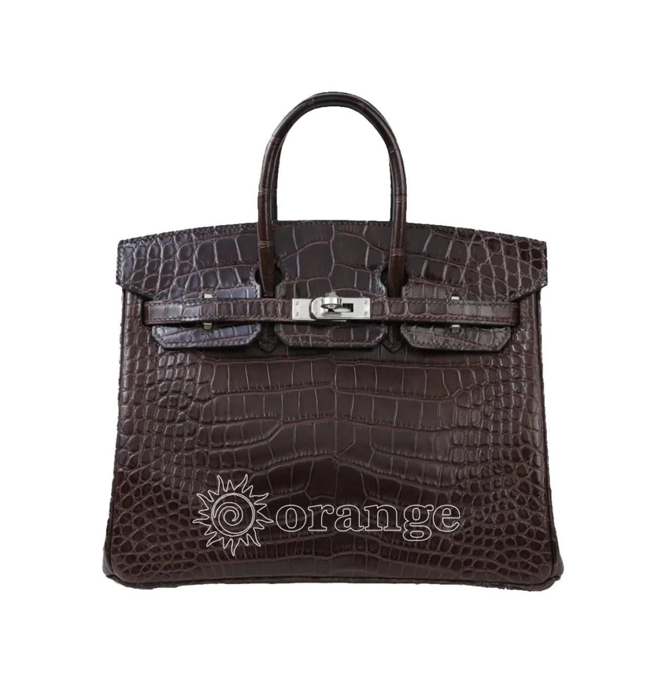 バーキン25 内マカサー × エベンヌ × ローズエクストリームクロコダイルシルバー