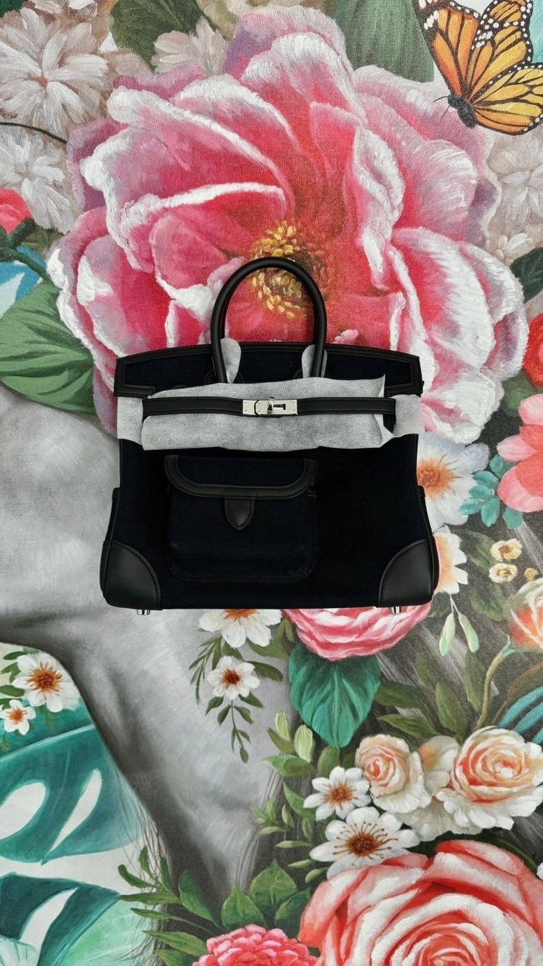 バーキン25 カーゴブラック ノワールトワルゴエラン × ヴォー・スイフトシルバー