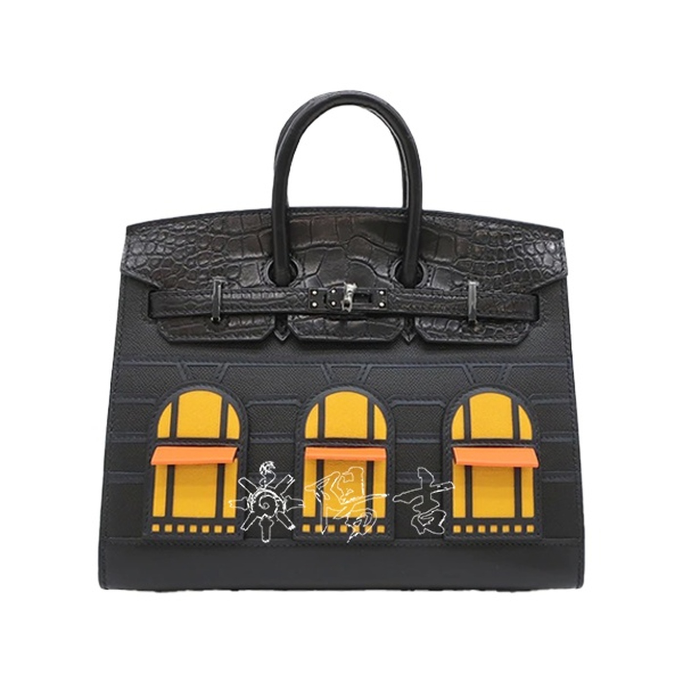 バーキン20 フォーブル MIDNIGHTブラック ノワール × ジョーヌアンブル × オレンジアリゲーター マット × ヴォー・マダム × ヴォー・スイフト × ソンブレロソーブラック