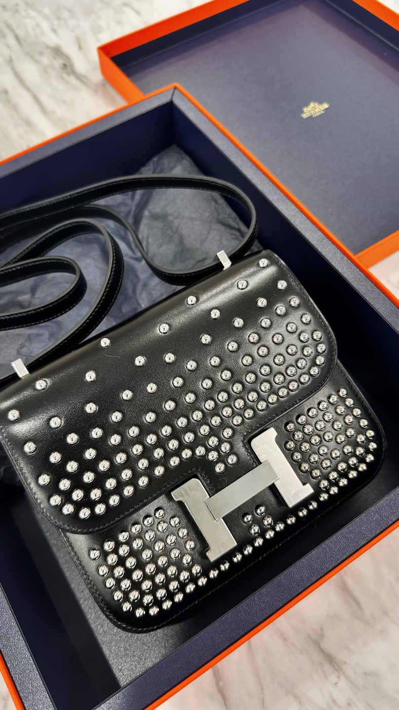 コンスタンス ミニ ミロワール クルーテブラック ノワールボックスカーフシルバー