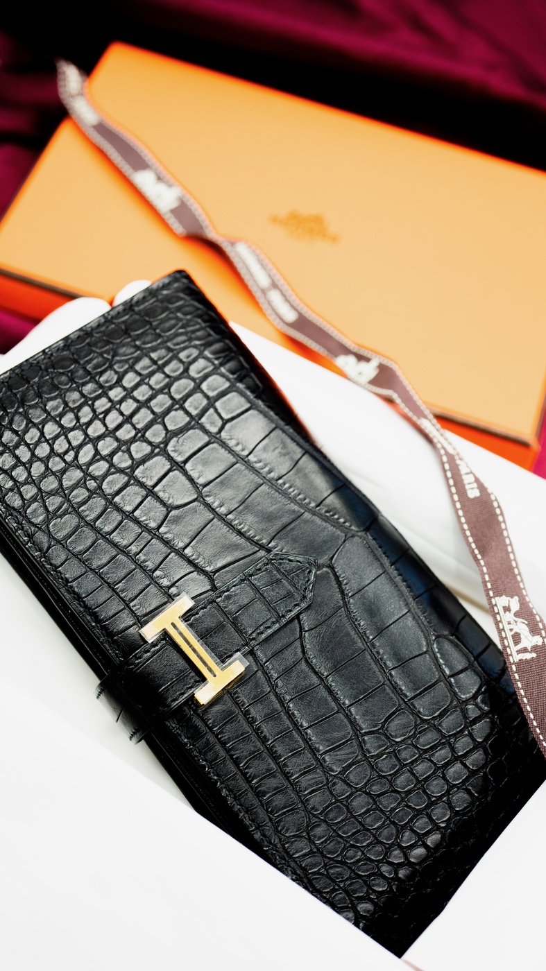べアン スフレブラック ノワールアリゲーター マットゴールド