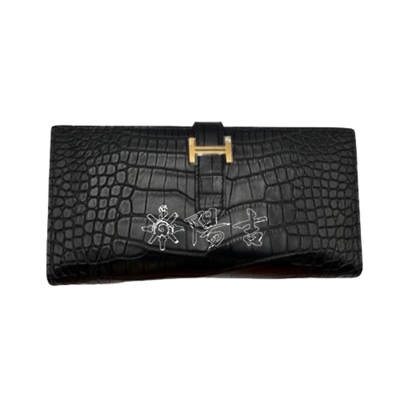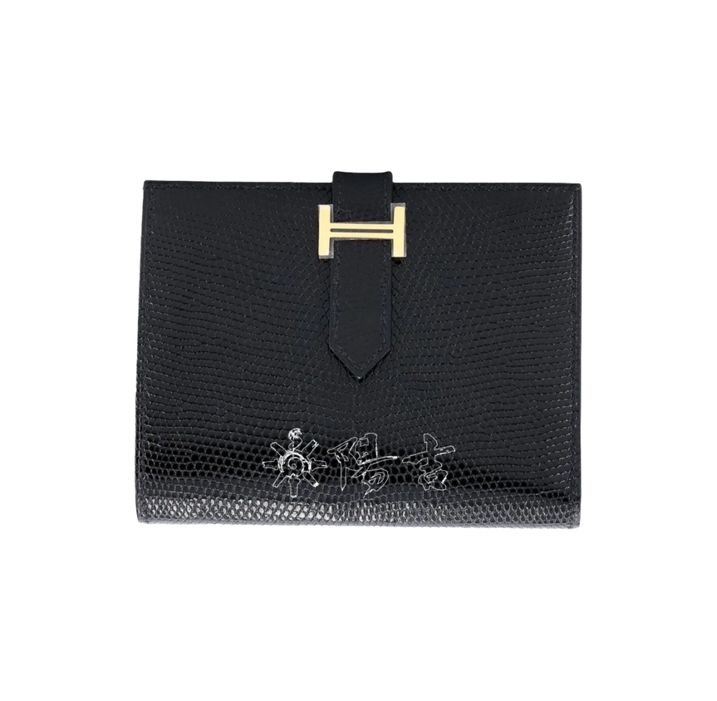 Hセリエ コンパクト ウォレットブラック ノワールボックスカーフ-