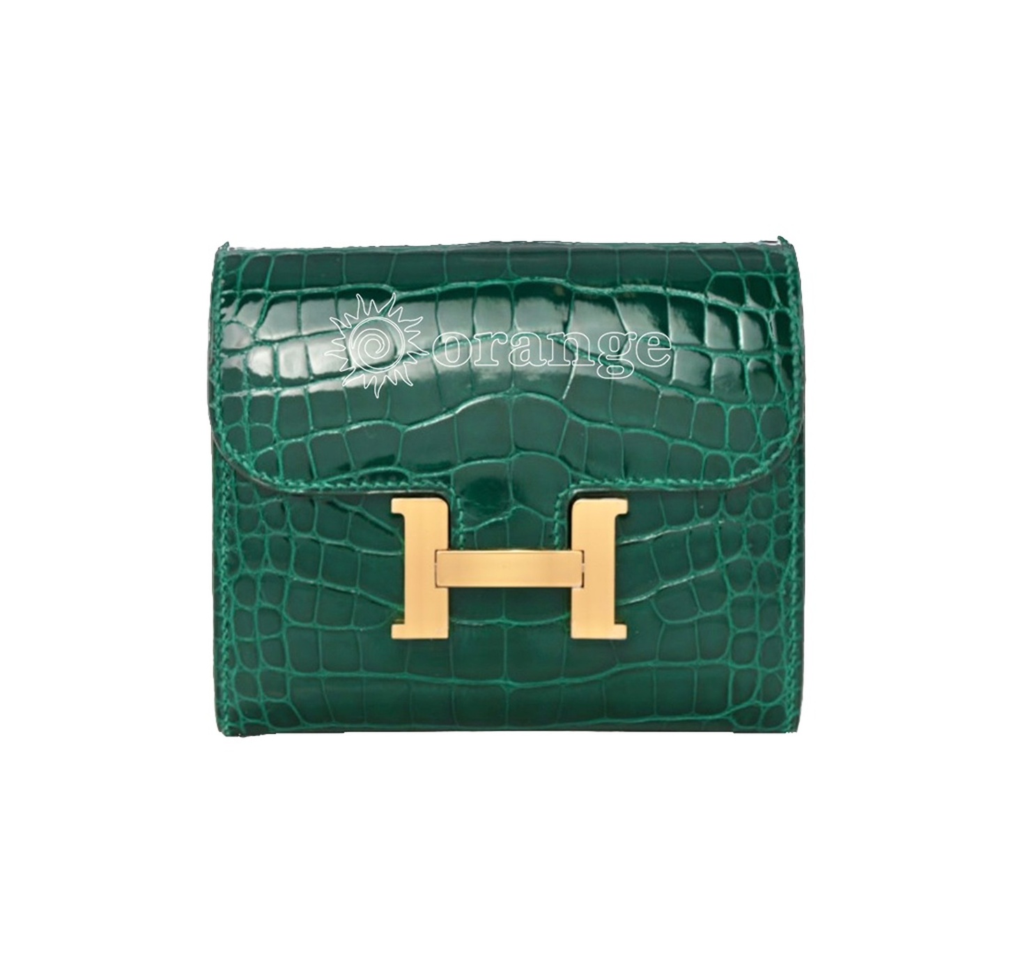 コンスタンス コンパクトヴェールエメラルドクロコダイル アリゲーター シャイニーゴールド
