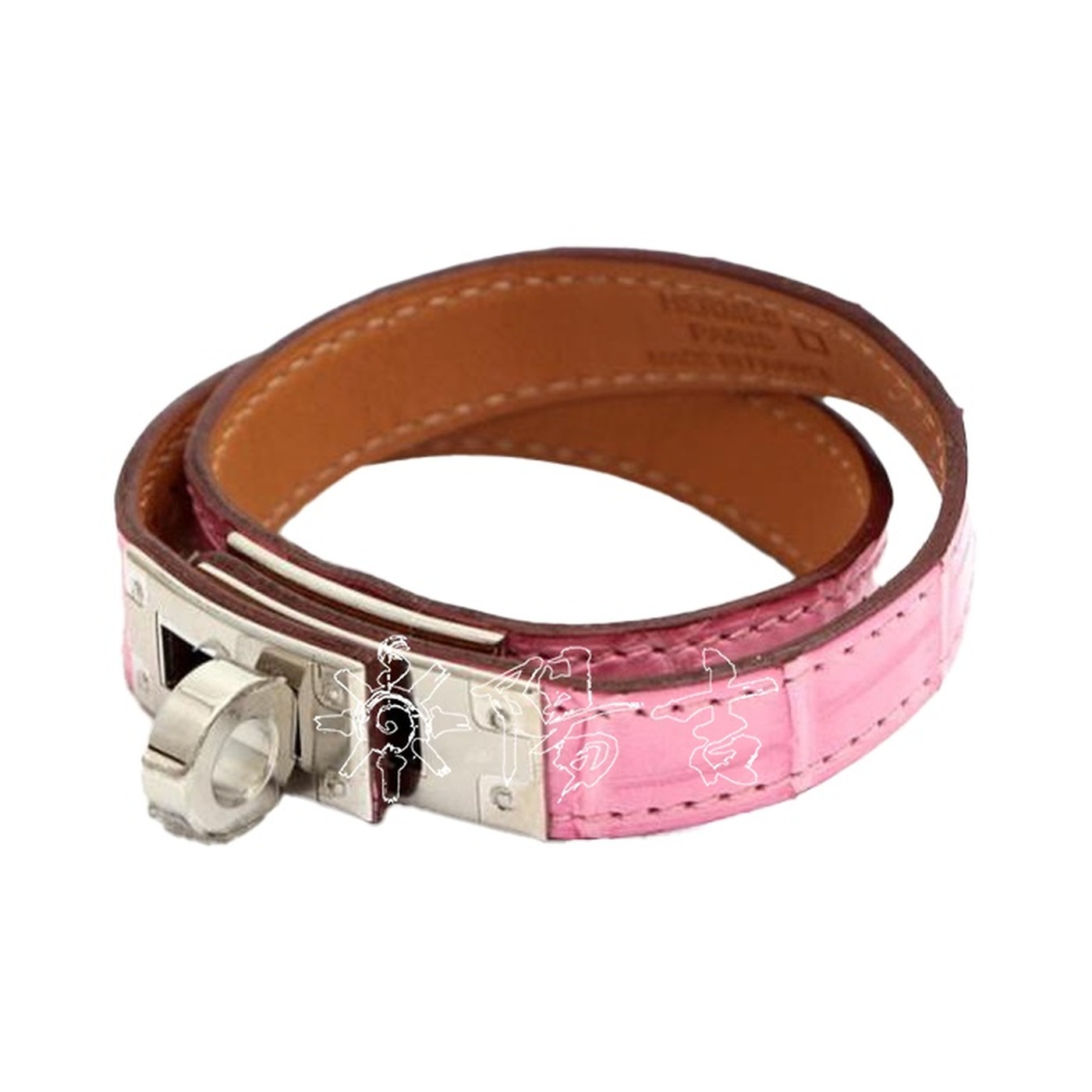 レザーブレスレット ケリー ドゥブルトゥールバブルガムクロコダイル アリゲーター マットシルバー
