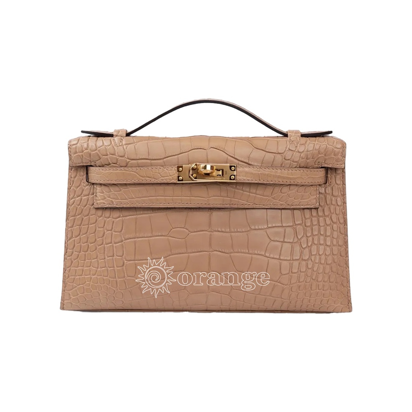 ポシェットケリーチャイクロコダイル アリゲーター マットゴールド