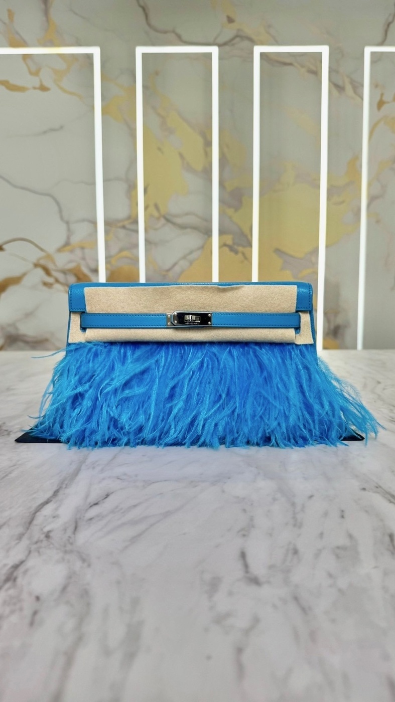 ケリーエラン フェザーブルーフリーダオーストリッチフェザー × シェーブルエレクトラム