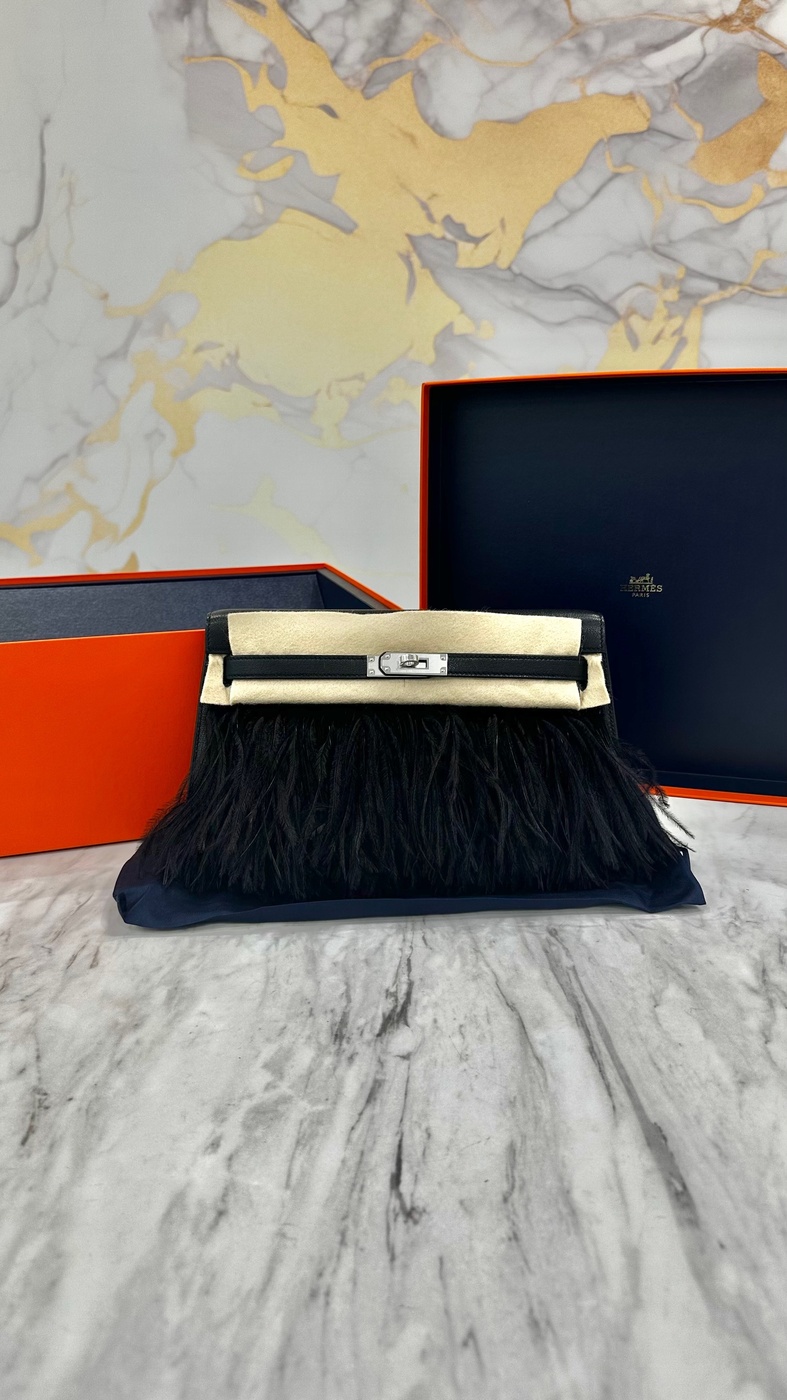 ケリーエラン フェザーブラック ノワールオーストリッチフェザー × シェーブルシルバー