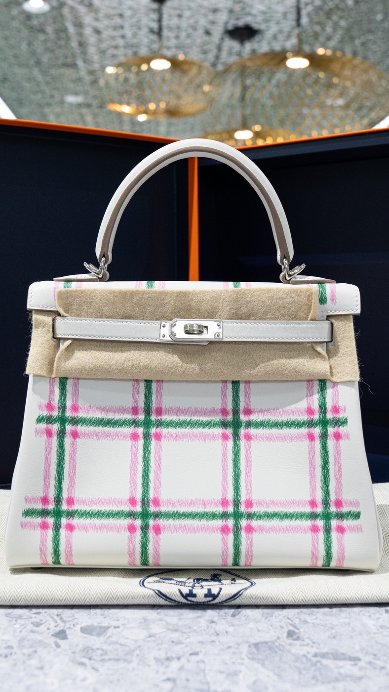 ケリー25 内 タータンライトヴェールモワイヤン × ローズバブルガム × グリスパールヴォー・スイフトシルバー