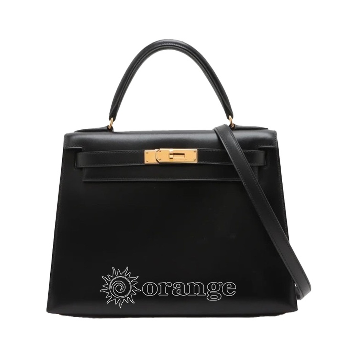 ケリー25 外ブラック ノワールボックスカーフゴールド