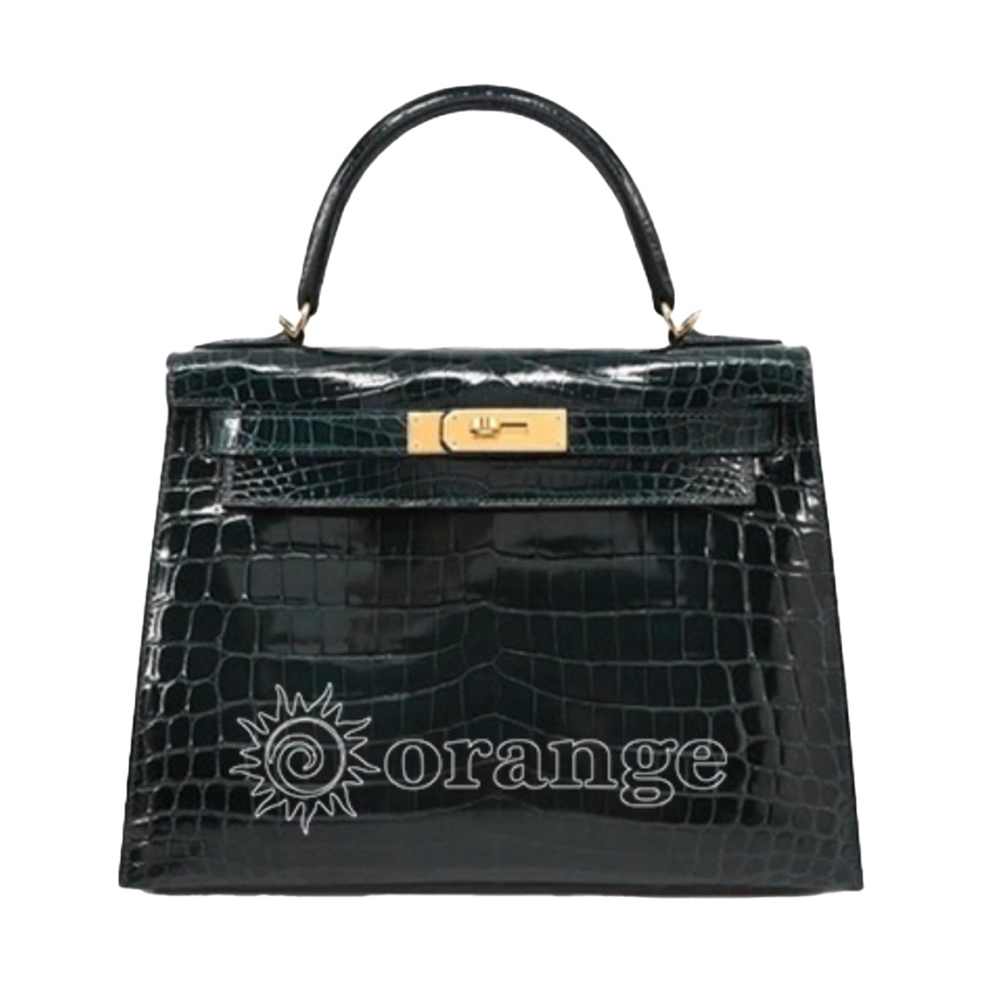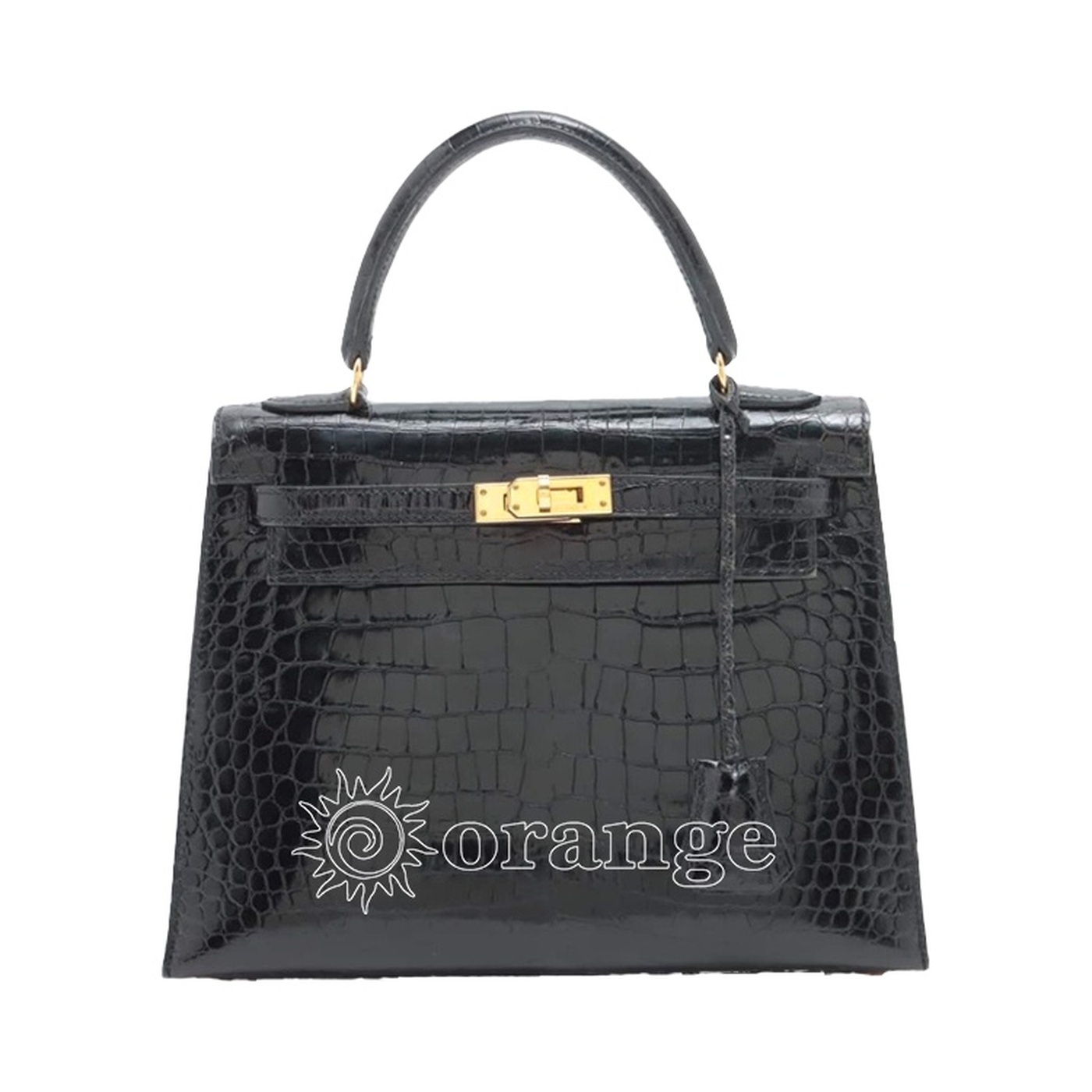 ケリー25 外ブラック ノワールクロコダイル ポロサスゴールド