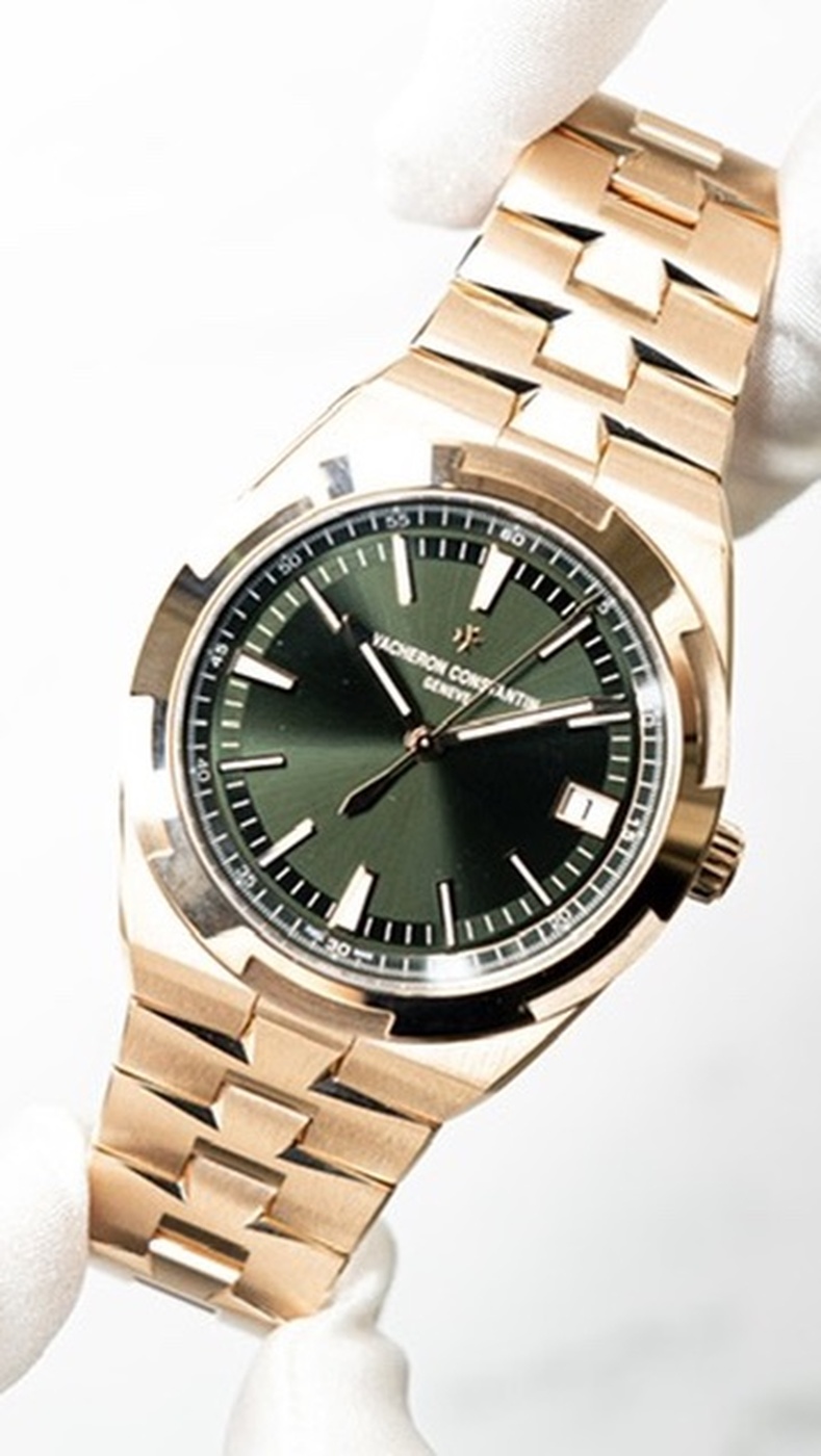 ピンクゴールド、グレイン仕上げのカーフレザー (グリーン)、ラバー (グリーン) | サンバーストサテン、グリーンラッカー