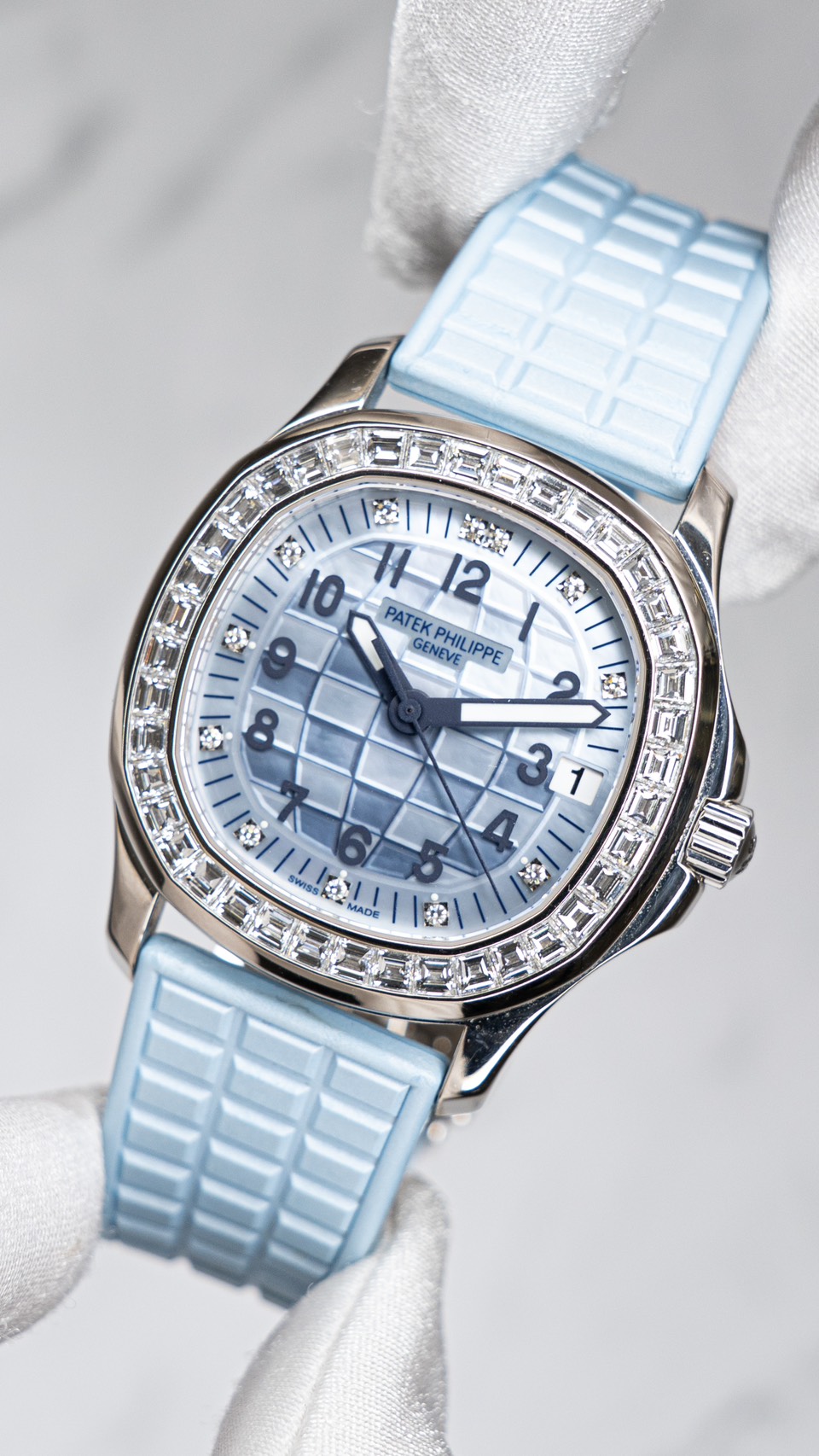 - 5072G-001:アクアノート・ルーチェ系の“ハイジュエリー寄り”。バゲットダイヤ×MOP文字盤で、スポーツ×宝飾のバランスが主役。