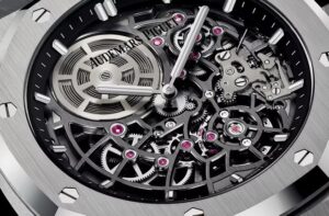 搭載されているムーブメントは、厚さ2.7mmという極薄の自社製自動巻きキャリバー。約57時間のパワーリザーブと、毎時28,800振動の高精度を両立しています。スケルトン加工により、歯車やローターの動きを視覚的に楽しめる点も大きな魅力です。装飾や面取りの細かさは、まさにオートオルロジュリーの粋。