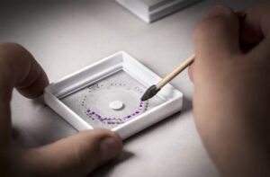 内部には自動巻きクロノグラフムーブメントを搭載しており、スモールセコンド、30分積算計、12時間積算計に加え、日付表示も完備。約40時間のパワーリザーブを持ち、実用性と華やかさのバランスが取れた仕様です。単なるラグジュアリーウォッチにとどまらず、日常使用にも対応する点がポイントです。