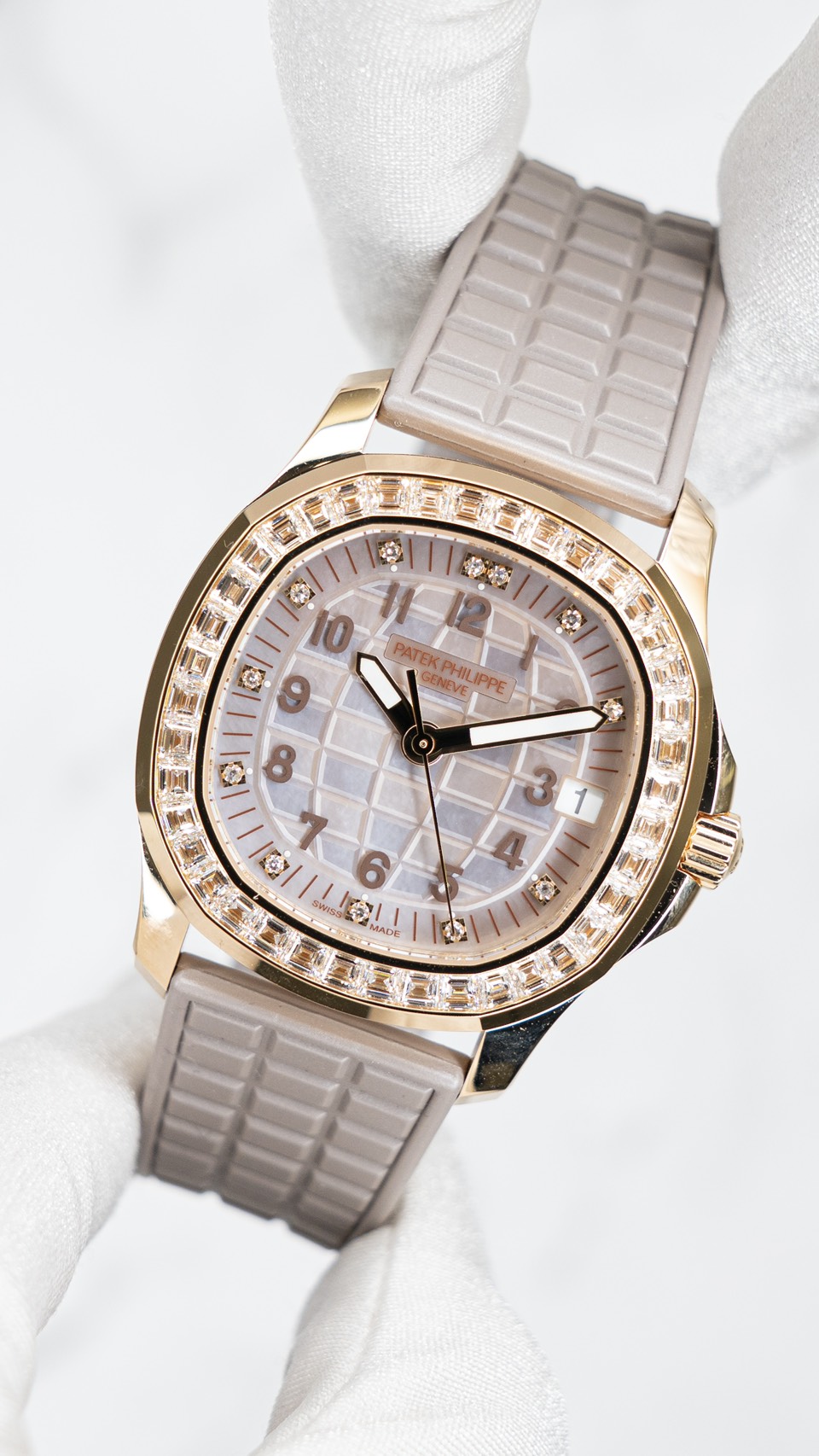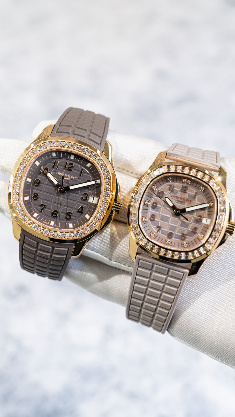 - 5072R-001:ケースは小ぶり(35mm台)。ベゼルやバックルまで含め、バゲットダイヤ中心の“ハイジュエリー寄り”。