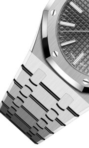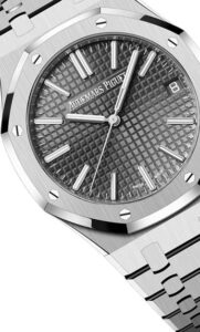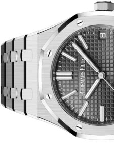 ステンレススティール製であるため比較的入手しやすい価格帯に位置しており、ロイヤルオークの中でも人気の高いモデルです。実用性と普段使いのしやすさが評価され、コレクションの入門機としても選ばれています。