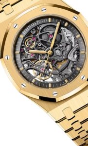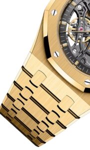 • 15407BA:キャリバー3132を搭載。自動巻き、45時間のパワーリザーブ。2つのテンプを同軸に配置したダブルバランスホイールにより、機械式時計としての安定性を高めています。