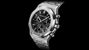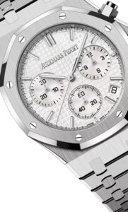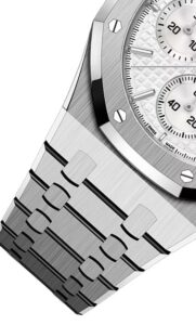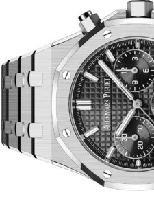 26240STシリーズは、Audemars Piguetの中でも特に人気の高い「ロイヤルオーク クロノグラフ」の現行モデルです。直径41mmのステンレススティール製ケース、サファイアクリスタル風防、ねじ込み式リュウズ、防水性能50mを備えており、日常使いからフォーマルまで幅広く対応できます。搭載されているのは、自社製自動巻きムーブメント「キャリバー4401」。フライバック機能付きのクロノグラフで、70時間のパワーリザーブを持ち、正確かつ安定した動作を実現しています。
