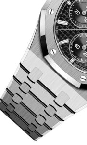 デザイン面では「グランド・タペストリー」と呼ばれる文字盤のパターンや、ベゼルに施されたポリッシュ&ヘアライン仕上げが高級感を演出。さらに、ブレスレットとの一体感もロイヤルオークならではの美点です。