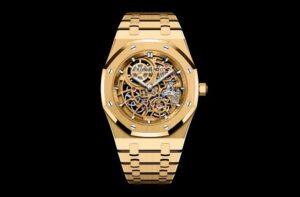 スケルトン構造と18Kゴールドの豪華さ、機械美と高級感を楽しめる逸品。