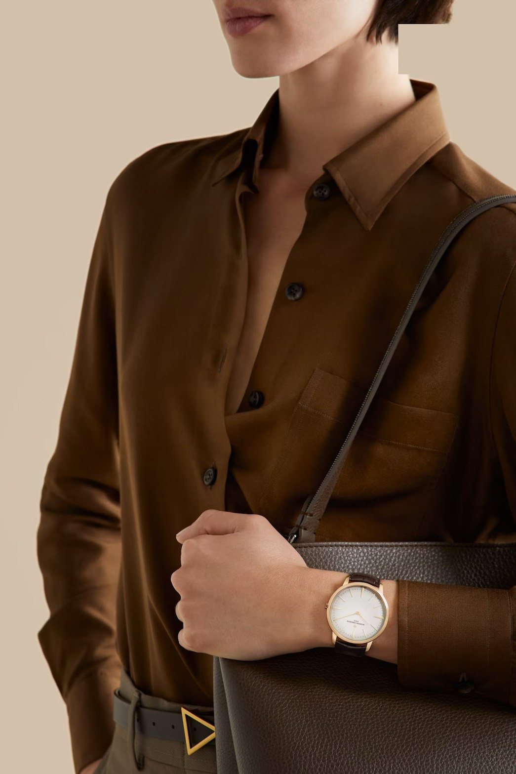色味を抑えた“静かな上質”。スーツやモノトーンの装いに溶け込み、時計だけが悪目立ちしないのが強みです。