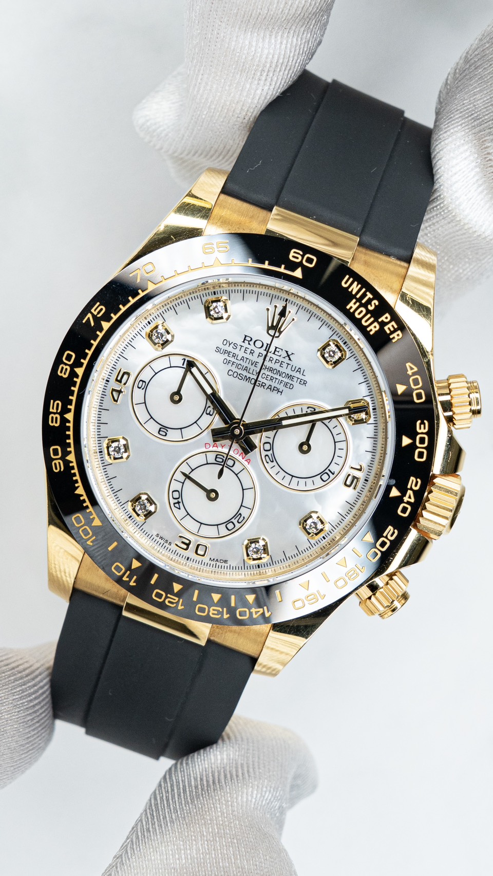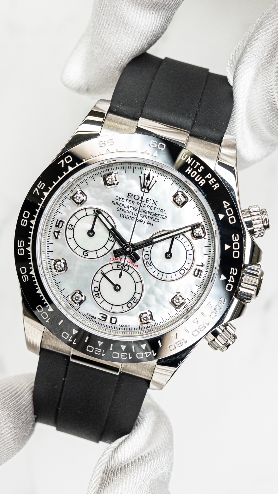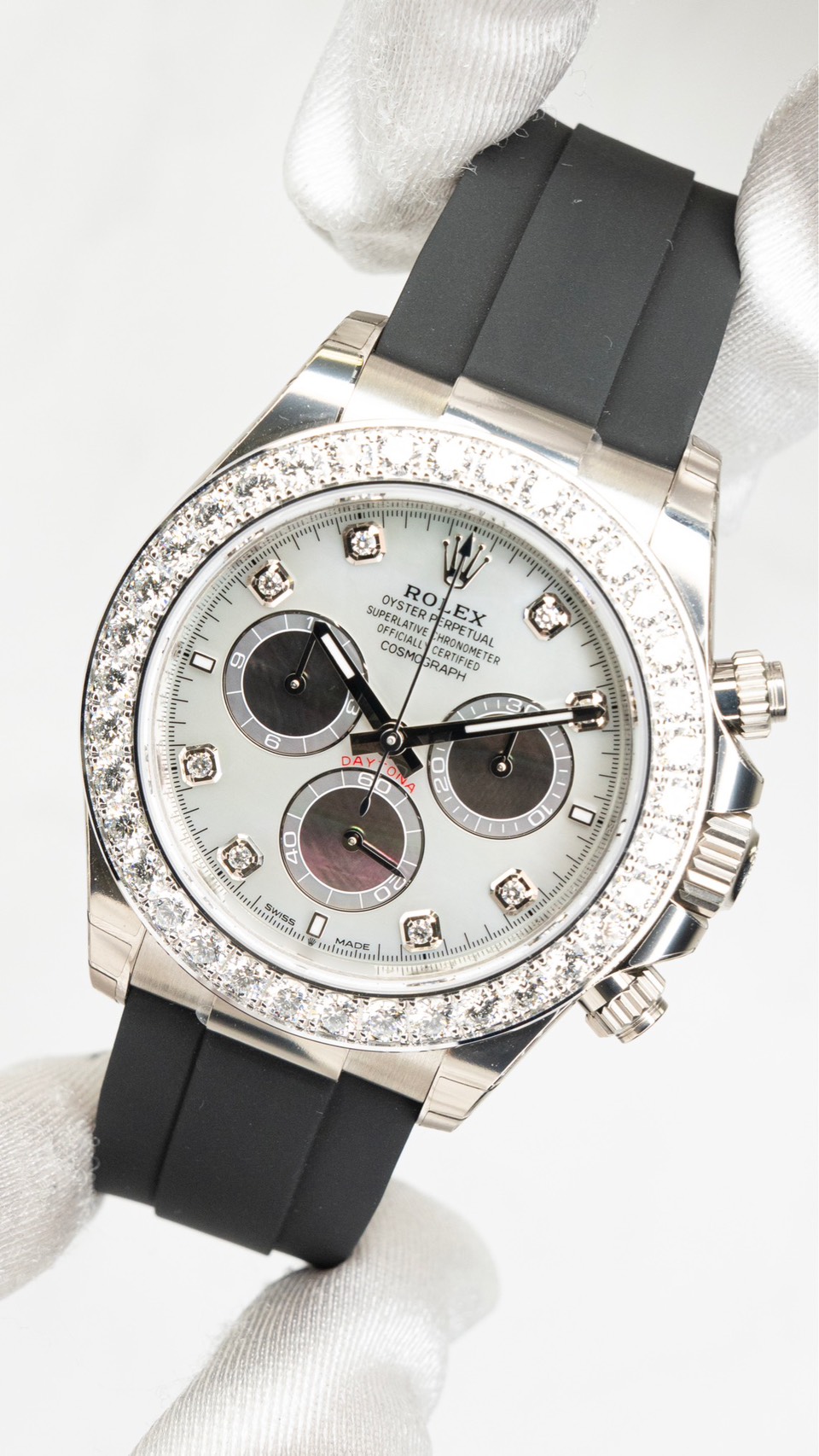 ロレックスのスポーツモデルの中でも、圧倒的な人気を誇る「コスモグラフ デイトナ」。その中でもホワイトシェル(マザーオブパール)文字盤を採用したモデルは、通常のデイトナとは一線を画す特別な存在です。