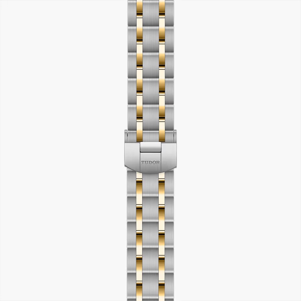 さらに、リューズは0.1mmのイエローゴールドキャップで覆われ、ブレスのセンターリンクも0.2mmのイエローゴールドキャップ仕様(またはスチール)と明記されています。