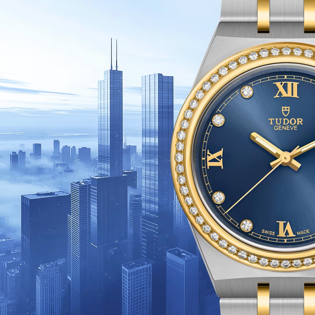 ROYAL(28mm)は、100m防水と自動巻きを備えつつ、ダイヤモンドとブルーダイアルで腕元をジュエリーのように整えるスポーツシック。M28320-0002とM28323-0002は、同じ28mmでも素材使いで空気が変わります。
