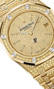• 宝石装飾:「Fully Set」仕様として、ケース・ベゼル・ダイヤル・ブレスレットに1,528個のブリリアントカット・イエローサファイアを贅沢にすべてにセッティング(約10.4カラット相当)