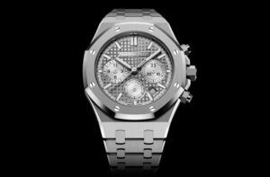 両モデルともにロイヤル オーク クロノグラフのエッセンスを凝縮した38mmサイズで、性能・仕様面ではほぼ同等です。しかし、文字盤のカラーと印象により、着用シーンや好みに応じた選び分けが可能です。青が“視線を集める華やかさ”と“ダイナミックな存在感”を好む方に、グレーが“落ち着いた美しさ”と“多様なスタイルとの調和”を求める方に最適でしょう。