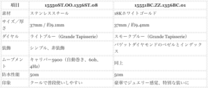 18Kホワイトゴールド製のケースとブレスレットを採用。サイズは同じく37mm、厚さは約9.4mm、防水性能も50mです。